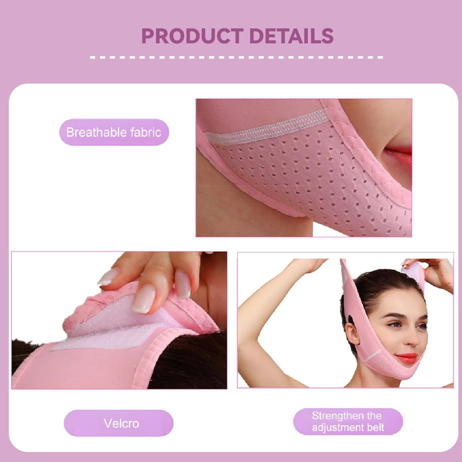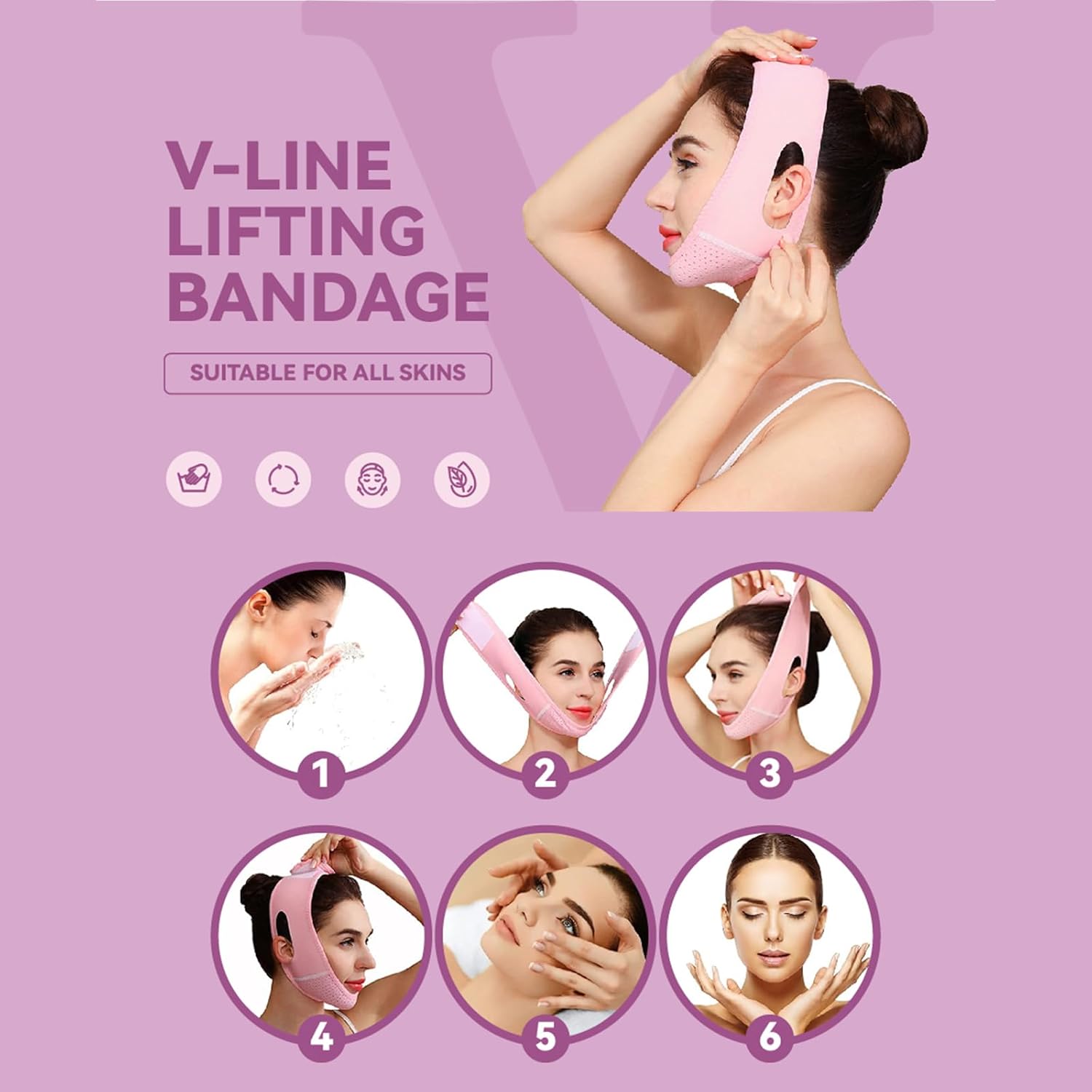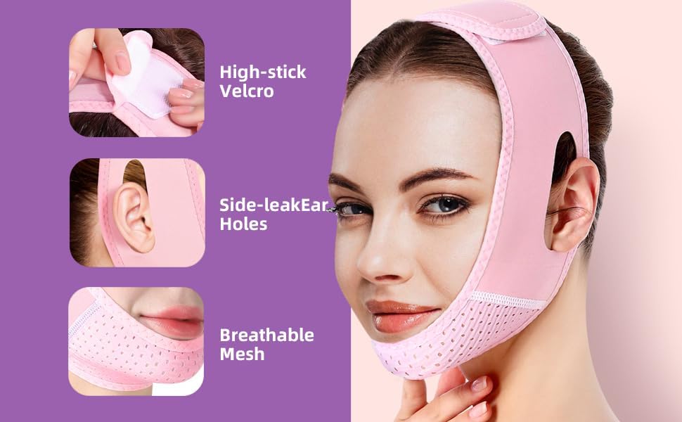 يتم ارتداء الجهاز على منطقة الذقن، حيث يعمل على شد الجلد بشكل طبيعي.